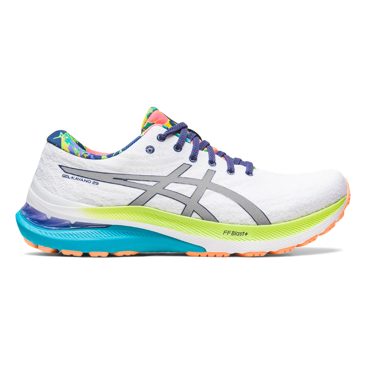 The GEL-KAYANO® 29 LITE-SHOW™ shoe creates a stable running experience and a more responsive feel underfoot. It’s equipped with reflective accents that help improve your visibility when you’re running in low-light conditions.